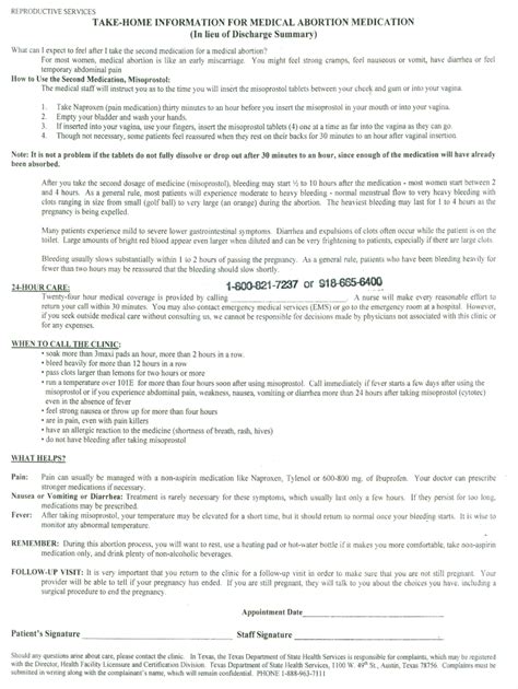 Read Online SAMPLE ABORTION DISCHARGE PAPERS Doc